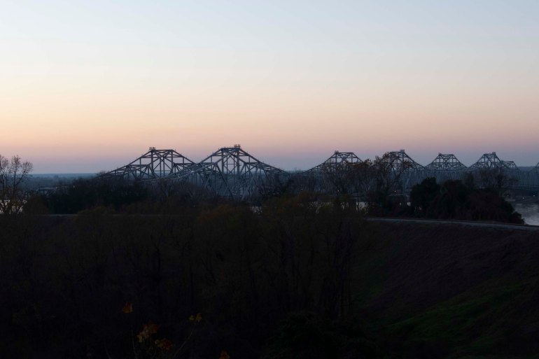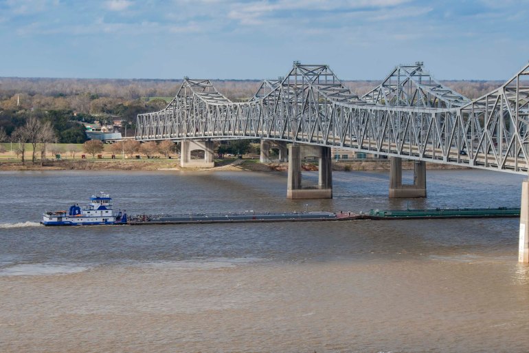 Natchez sits on the banks of the Mississippi River, connected to Vidalia, Louisiana by the Natchez–Vidalia Bridge. This bridge is a twin cantilever bridge carrying U.S. Route 84, and 425 across the Mississippi River between Vidalia and Natchez. It is the tallest bridge in Mississippi and makes for great photography.