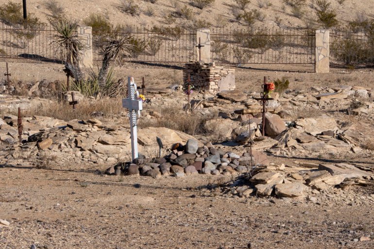 We stayed at the Lajita RV Park that backs up to fabulous mountain scenery. The park was great with wood fire pits at each site (which have been uncommon so far) and hiking paths from the park up into the mountains. The park is a dark skies park, which means lights are to be out after a certain hour. The pictures above are taken from our site and the Lajita Cemetery adjacent to the park entrance.