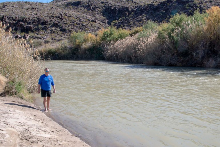 We visited Terlingua, a ghost town near Lajitas and the Big Bend National and State Parks. Amazing sites with wild donkeys and wild Texans from Terlingua thrown in. The drive from Lajitas to Presidio takes you along the Rio Grande through the Big Bend State Park. This is a meandering drive that we are happy we did not miss. Brian took the opportunity to wade in the Rio Grande River. We both thought the the river would be much wider than it is in this area.