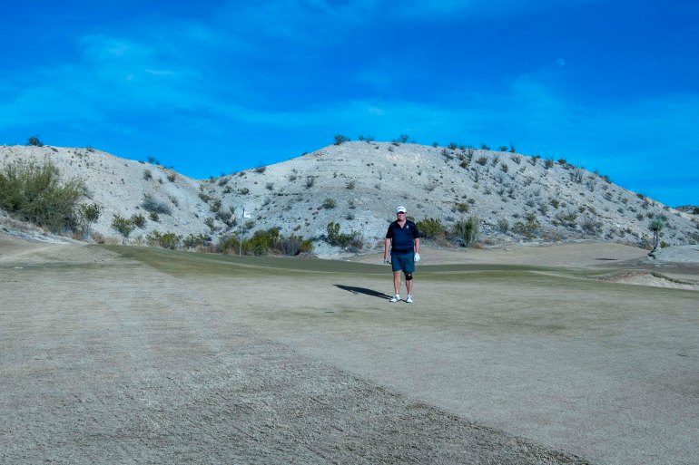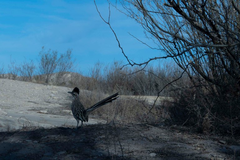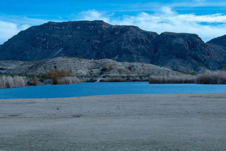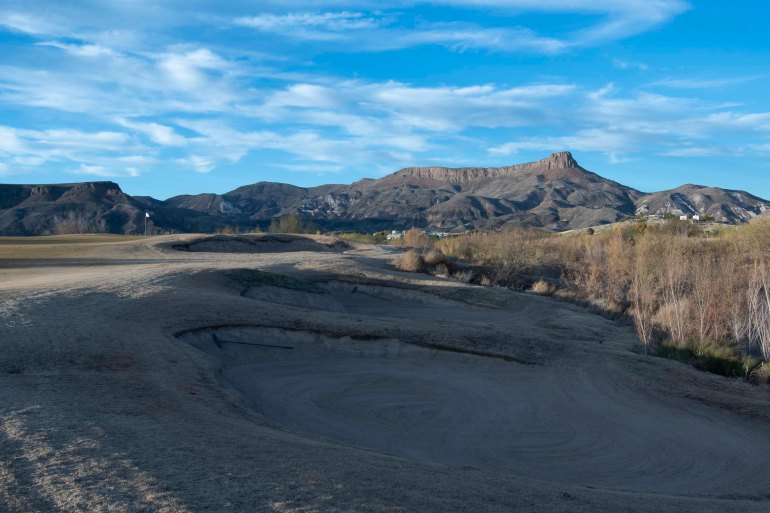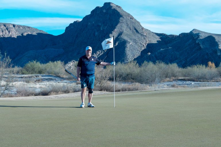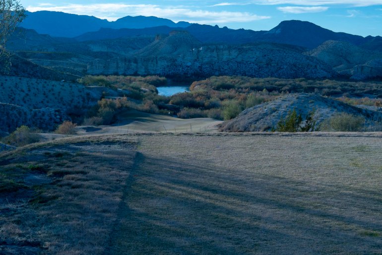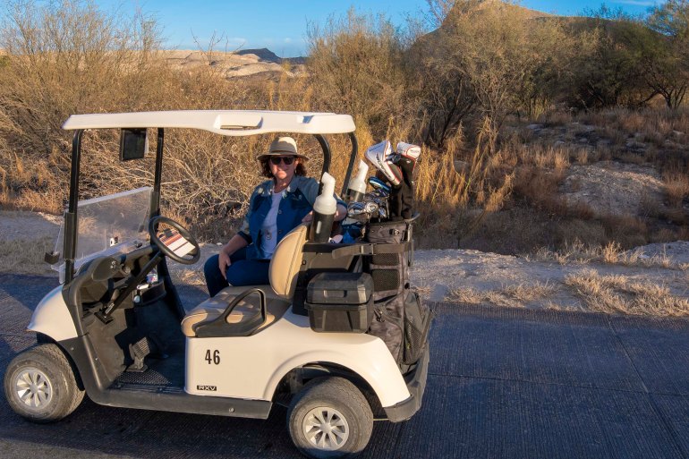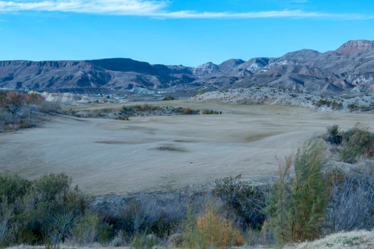 The Lajitas RV Park is a stone’s throw from the Blackjack’s Crossings Golf Course at LaJita Resort. Brian golfed the course and I rode along and wore several hats: personal photographer, flag pole attendant, and golf ball finder. The golf course greens were dormant but that did not affect the astounding views of the mountains and the Rio Grande. The golf cart path was like a roller coaster in spots, there were spectacular elevated tee boxes, and roadrunners were spotted throughout.