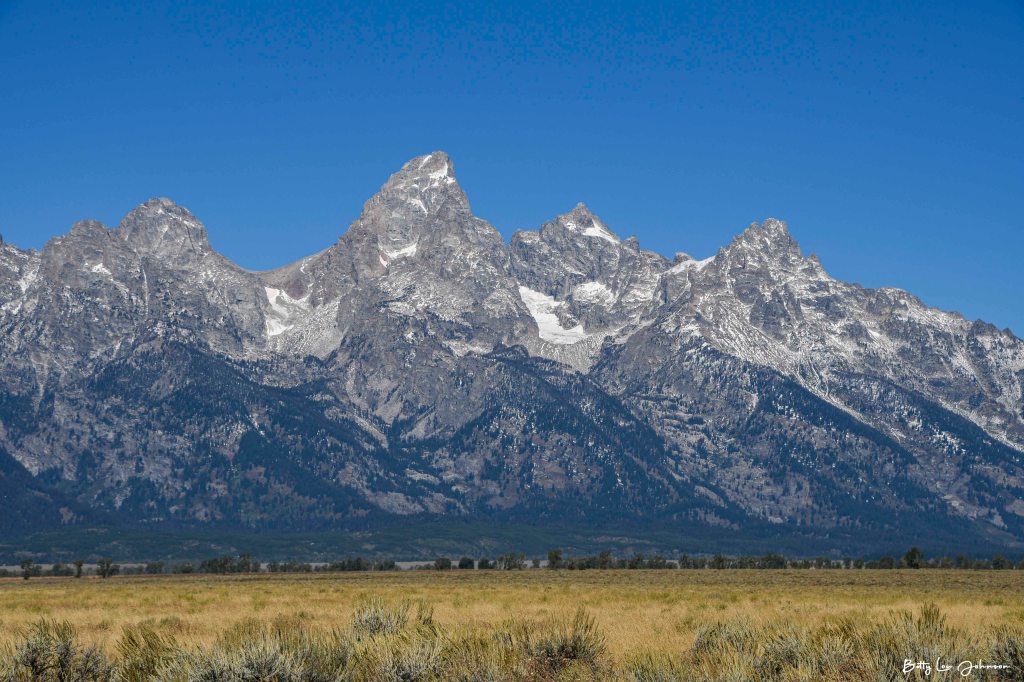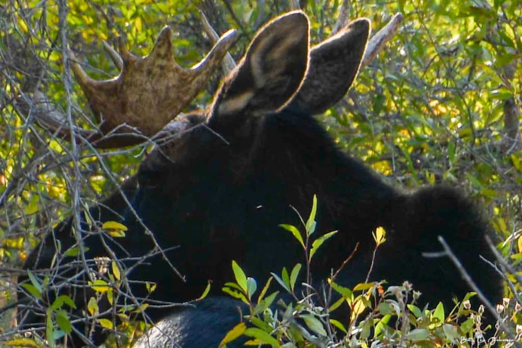 We spent a week in Grand Tetons National Park at the Gros Ventre ( French for Big Belly, after an American Native tribe) campground. The campground was a great location to explore the Tetons and Jackson Hole. It backs up to the Gros Ventre River where you might be able to catch a trout fly fishing or if you are even more lucky you might encounter a moose or two. We had the good luck of the latter.
