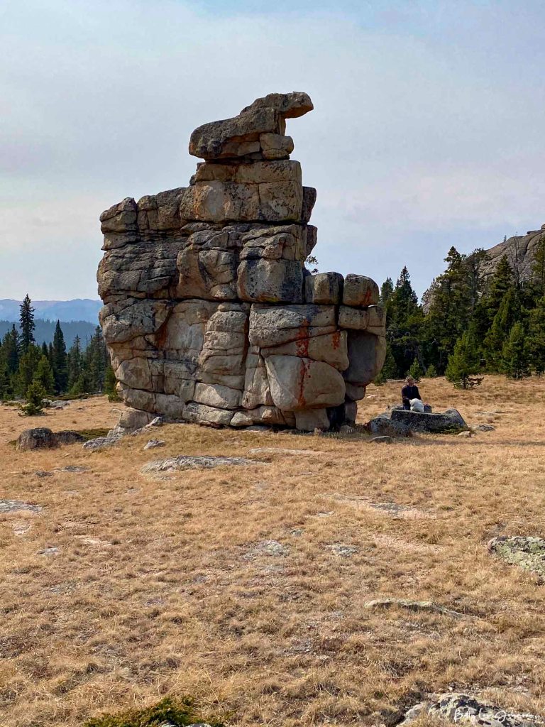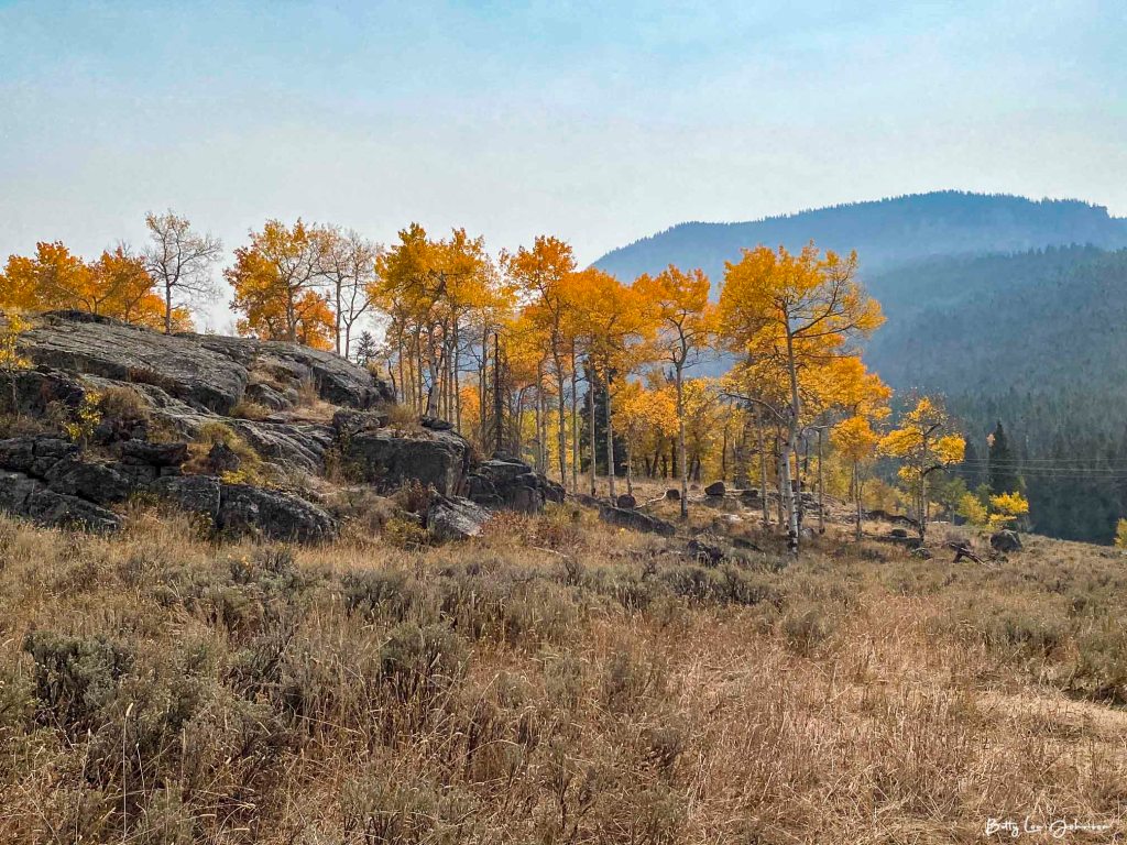 The Tie Flume campground found in the Big Horn National Forest was lovely with about 20 sites and a river running along side it. There was a water well pump that reminded me of the camping I did as a Girl Scout. The wild life seemed to be chased off by the forest fire smoke and we saw very few animals. We saw a single grizzly bear when we came down the mountain to return the UTV, simply thrilling. We wore some bright clothes when trail riding as bow hunting season for Elk had begun.