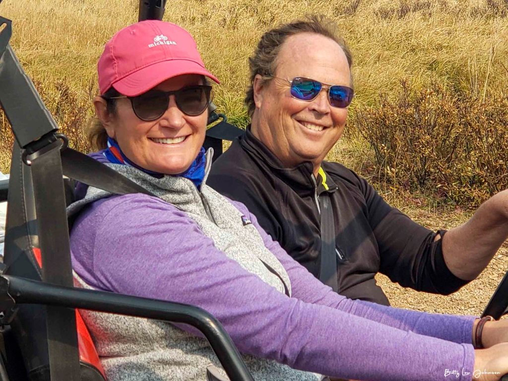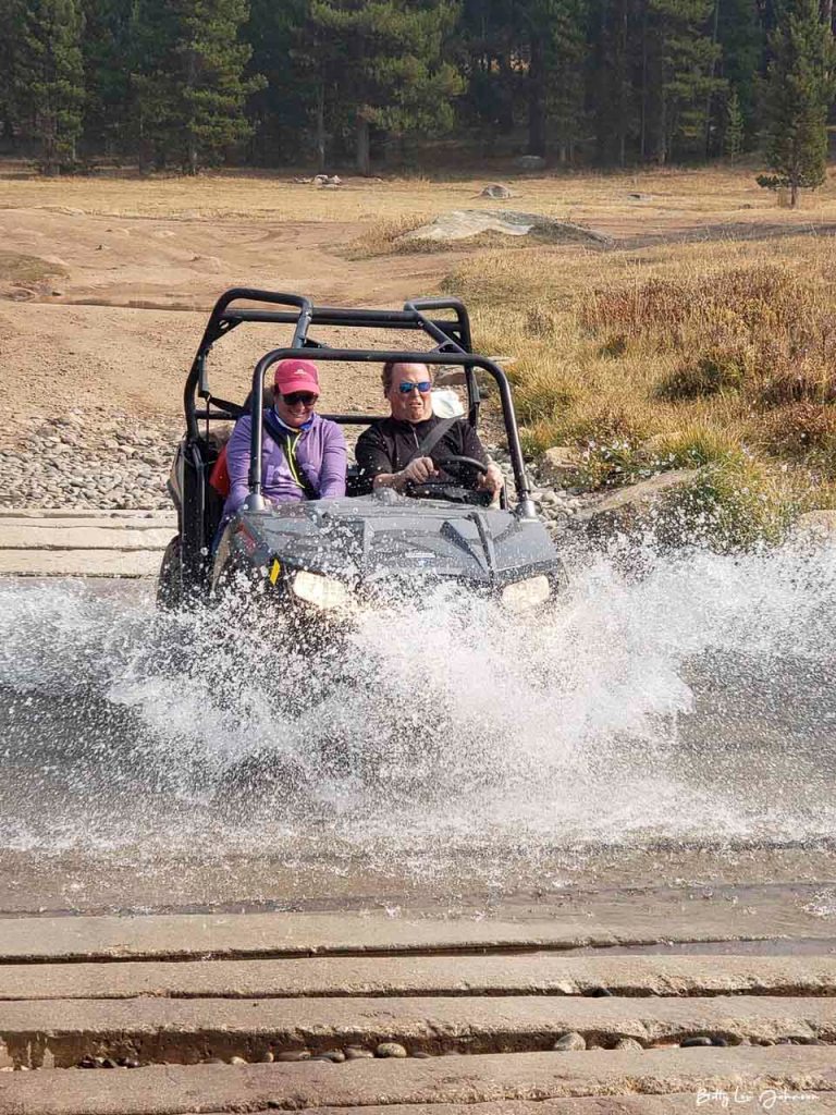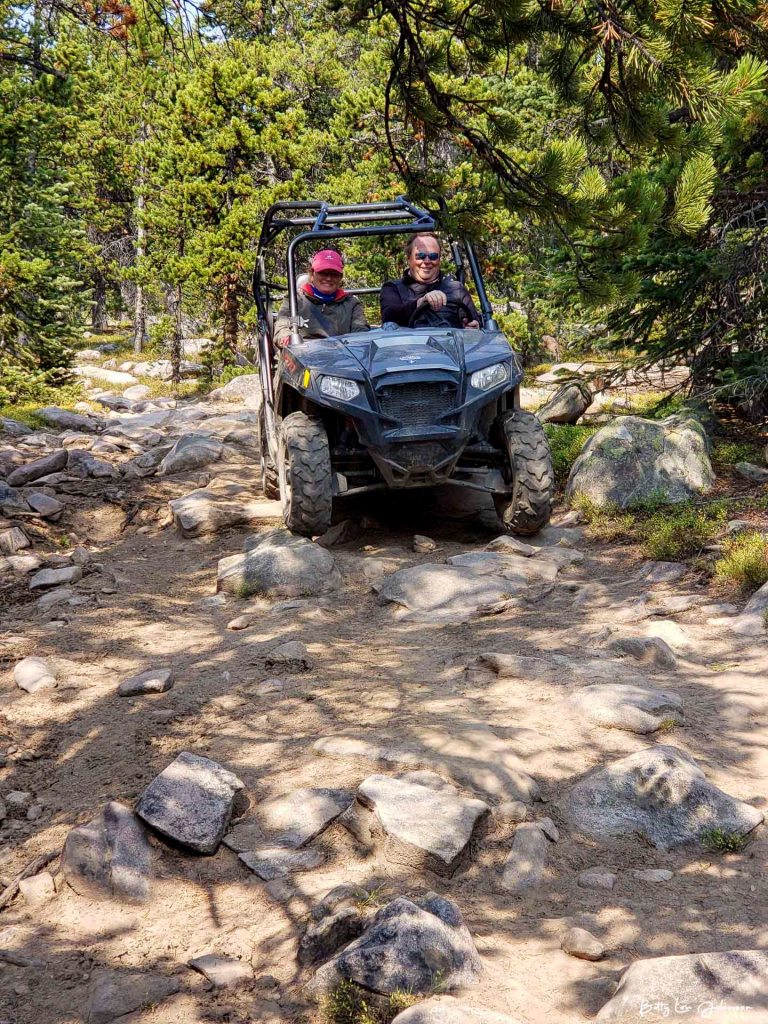 Our friends have much experience and were wonderful at showing us the ropes when it comes to driving ATVs and UTVs and we had a blast. We drove through rivers, creeks, mud ponds, herds of cattle, skinny trails, flat trails, boulder trails and so on. Brian loved driving the UTV we rented. I loved being his passenger. We returned to camp each day caked in dust and mud. Adam and John were excellent consultants when it came to picking a “line” to travel through tricky boulder trails and water hazards. I can honestly say we are the only people we know that caught a brook trout with their UTV when crossing a river. Unfortunately, it was only 3 inches long so we threw it back and had a good laugh.