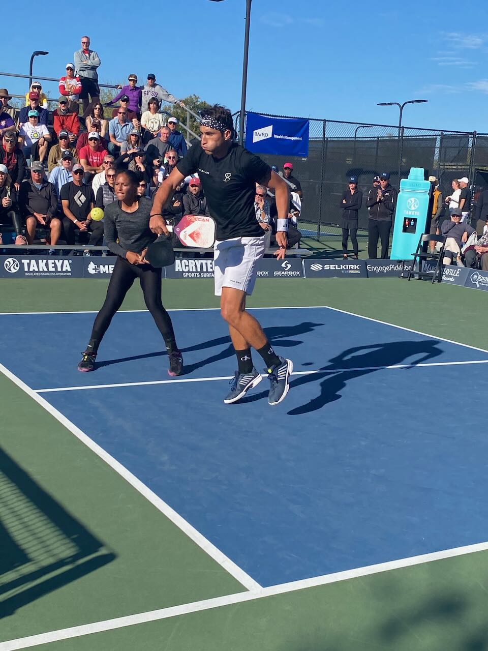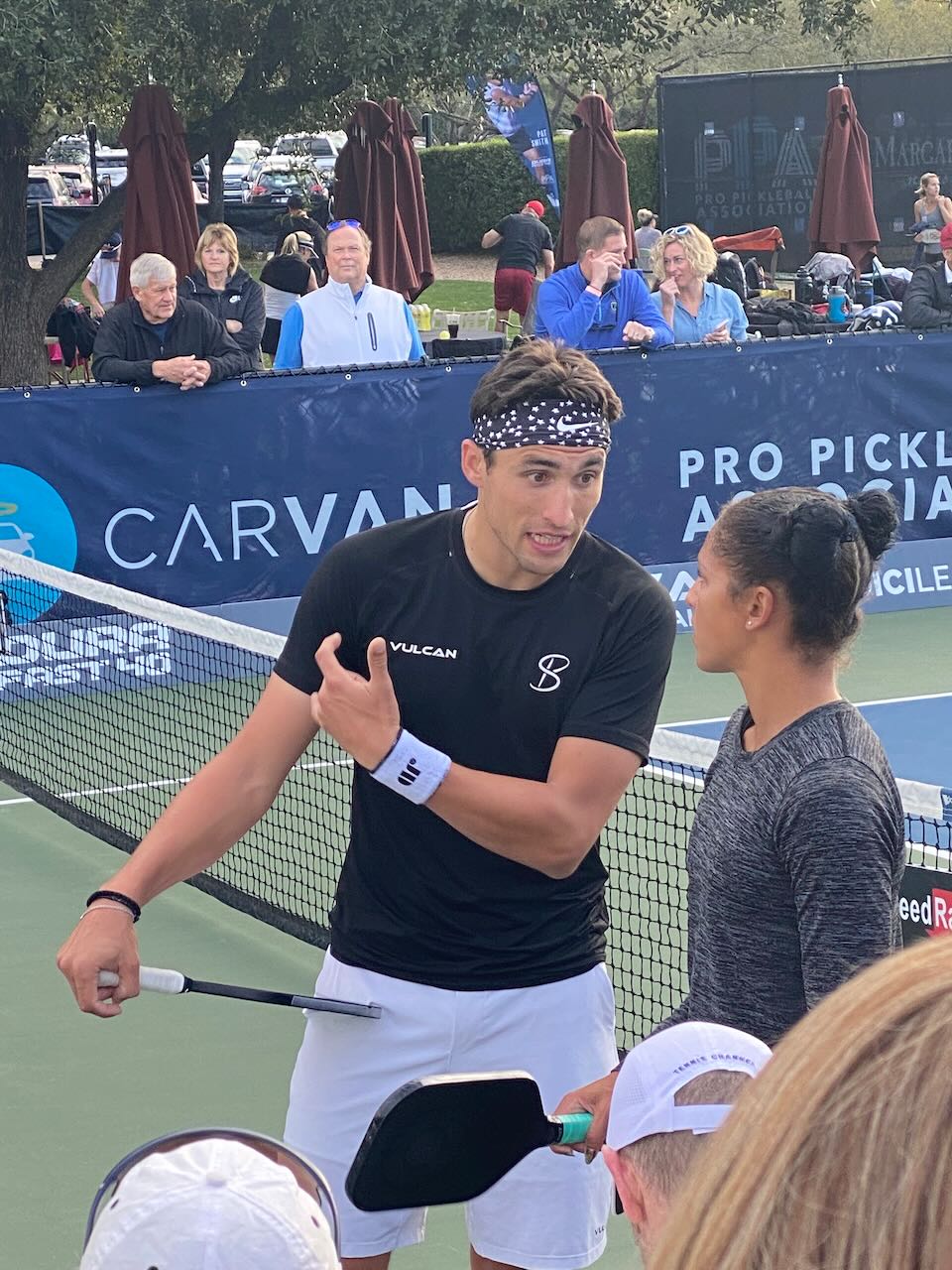 We were lucky to attend the final day of the Carvana Desert Open pickleball tournament held at the JW Marriott pickleball center. The sport is so fun because it is relatively new and you are able to get close to the players and center court. After watching the mixed doubles tournament between Ben Johns & Anna Leigh Waters /Jessie Irvine & Jay Devilliers, we bumped into Ben Johns in the demonstration tent area and were able to congratulate him on his mixed doubles gold win.