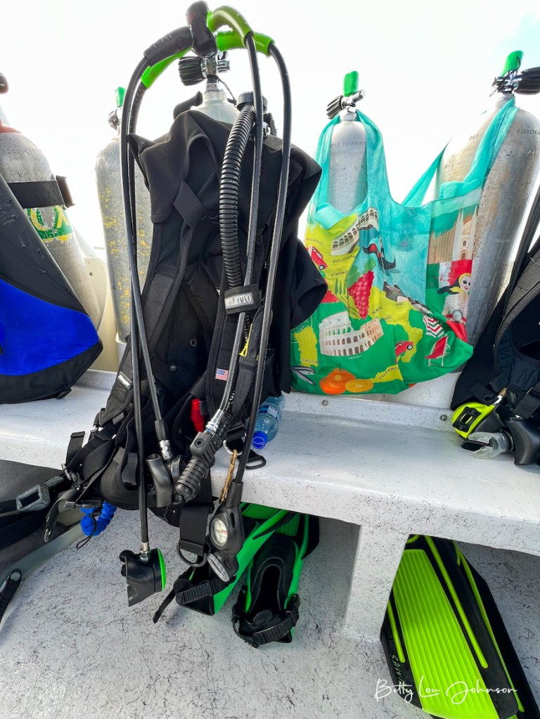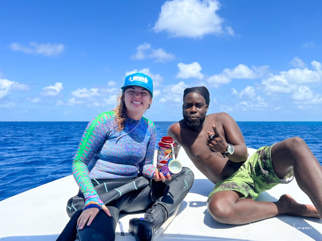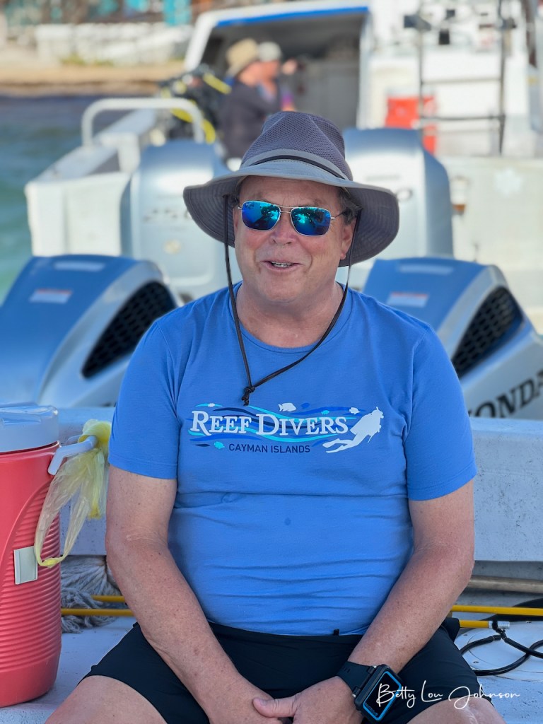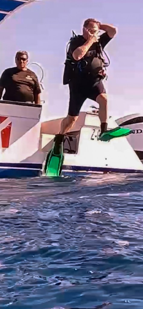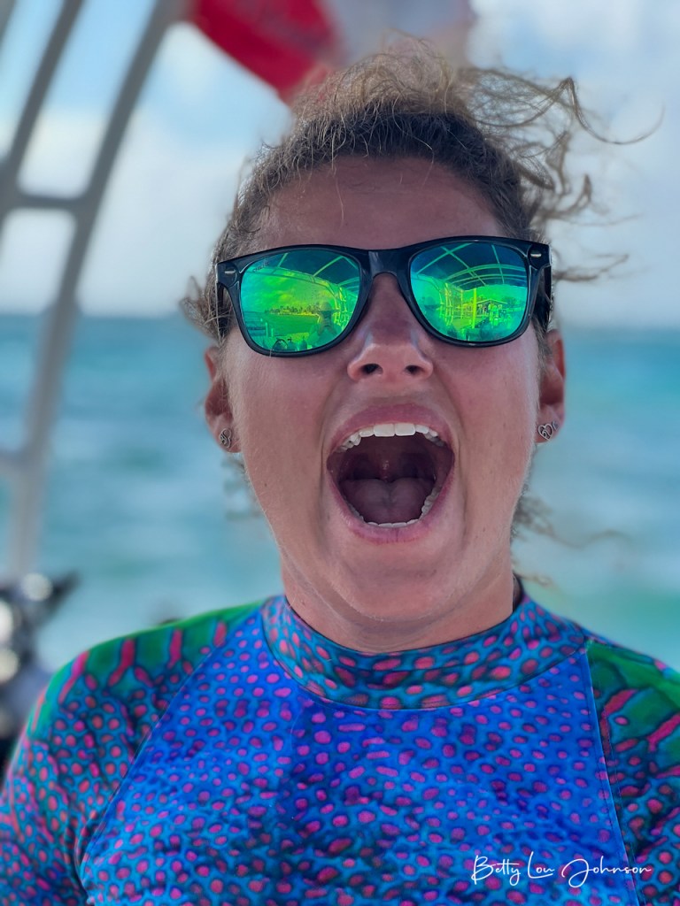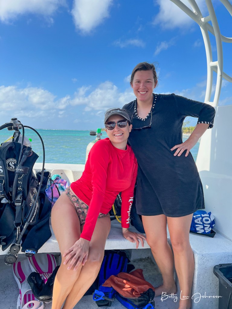 We dove the “Blue Hole” (bucket list check-off) with its stalactites and deep blue waters. We saw many nurse and reef sharks and they tend to follow and circle the dive groups. Call me crazy, but it’s not as uncomfortable as it used to be. We had the good luck (many thanks Captain Ed) to dive with dolphins at one of our safety stops. Simply amazing. There were many green moray eels to be seen in reef crevices and also free swimming. The spotted eagle rays were a gorgeous sight to see. We found beautiful scorpion/rock fish, what genius camouflage artists they are. There were green and loggerhead turtles. The octopus and toad fish were elusive and we will have to see them next time. The reefs were healthy and the sea life was plentiful.