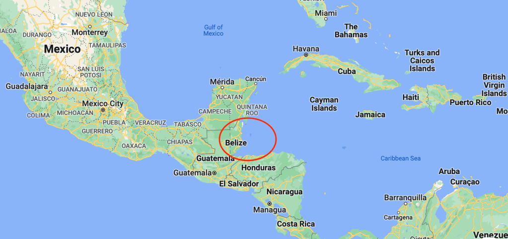 Belize is a country on the eastern coast of Central America along the Caribbean Sea. To the east is the Turneffe Atoll.