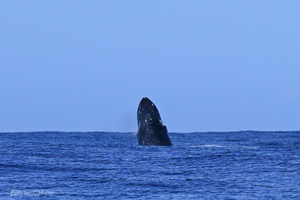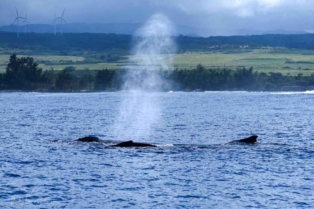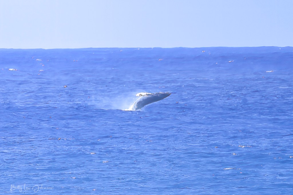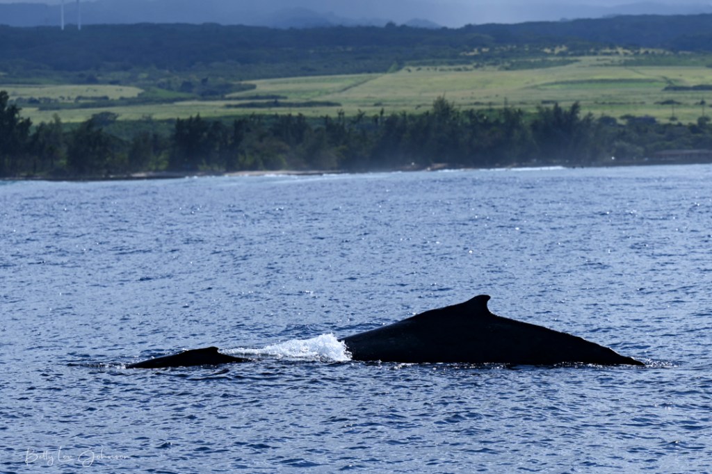 It’s been a goal of mine to photograph a whale breach. It’s an elusive goal because the breach happens so fast and it almost has to happen in the spot where you have your camera pointed and it also has to happen when you have your eye to the viewfinder to get good focus. I took a whale watching tour at Hale’iwa and sure enough, the whales were present. I found a fun mom and baby and many dolphins. The best breach was not on the tour but from our hotel room balcony, about 3/4-1 mile away. The goal persists…