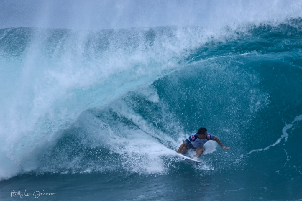 The North Shore is a renowned surf spot. We were delighted to find that the first event in the World Surf League competition was on: the Pro Pipe at the Bonzai Pipeline. Thrilling to watch and so fun to photograph. The stars were out and we were able to see the local hero and three-time world champion, John John Florence, Betty Lou (Sakura) Johnson -gotta love the name, and Lee Slater, a golden oldie, and the mens winner Barron Mamiya of Hawaii. At the end of final day, we dined a couple tables over from Barron Mamiya and his boisterous posse. Excitement was in the air.