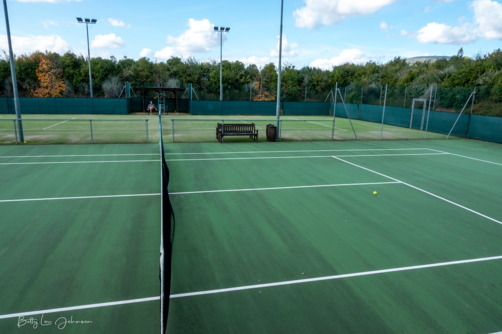 The resort has a medieval village with vintage shops (shoemaker, jeweler, textiles, weaver and art), ruins, vegetable gardens, apiary, olive grove, vineyards, horse farm, golf and tennis(guess who won?!).